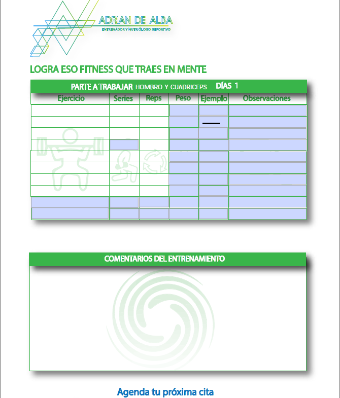- Comentarios: Añade los pesos usados y anota tus observaciones para personalizar aún más tu entrenamiento.